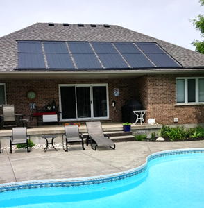 | Ejemplo: Piscina de 6x4m, y 1,5m de profundidad. Volumen: 6x4x1,5 = 36m3 Numero de colectores: 36/3 = 12 colectores Área total necesaria: 0,75*12 x 3m = 9m x 3m Para la recirculación del agua de la piscina al colector, se puede hacer mediante la bomba del filtro de la piscina, o con bomba de entre 60w y 200w, según la altura de los colectores. |