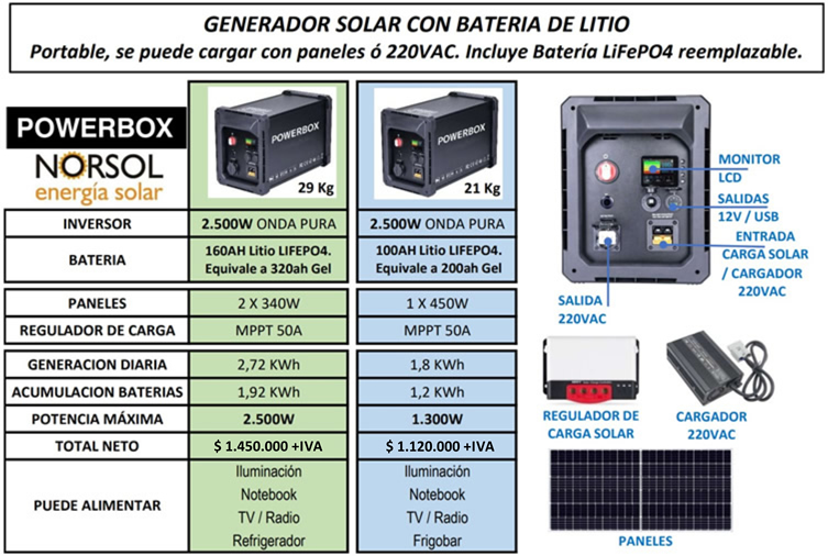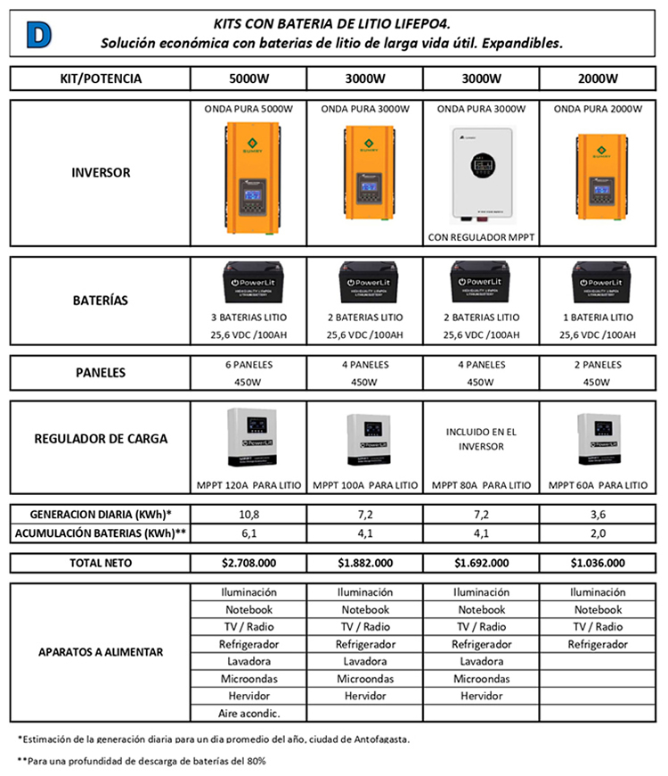 Seleccione el KIT FOTOVOLTAICO apropiado según sus necesidades de potencia y energía (ejemplos al pie de página).